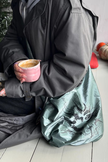 After sewing, Jagoda applied her own graphics to the bags using screen printing.